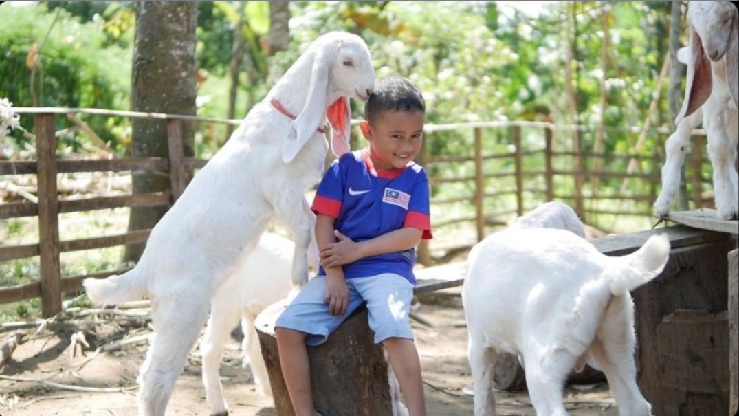 MEMASUKI sebuah rumah yang sudah disulap layaknya kafe, sayup-sayup terdengar suara kambing bersahutan. Mencoba melangkah lebih dalam, ternyata suara kambing ini semakin nyaring, ditambah celoteh anak-anak yang bermain bersamanya.