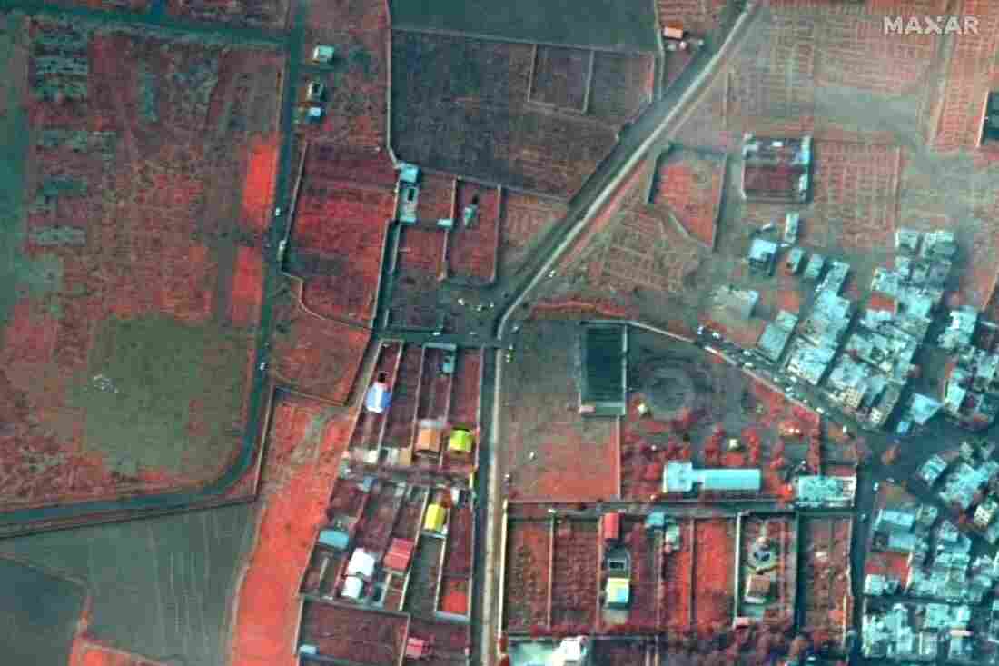 Infrared satellite imagery of the crash site near Tehran on Thursday. ©2020 Maxar Technologies hide caption