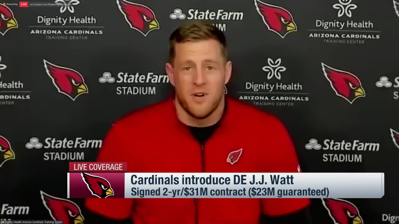 "The longer I looked at it, the more it just, signs kept pointing back down here," Watt said. "There's a lot of exciting things about what's happening down here in Arizona. I've always said you have to have a quarterback in this league to have a chance, and there's a young, extremely talented quarterback here who can do big things and is going from Year 2 to Year 3 and can take an even bigger jump to continue to grow and progress and be even better. Then you've got DeAndre Hopkins who's one of the best wide receivers in the league, I'm obviously very familiar with."